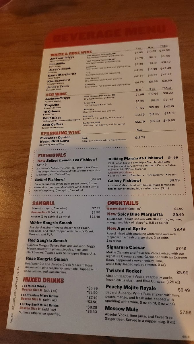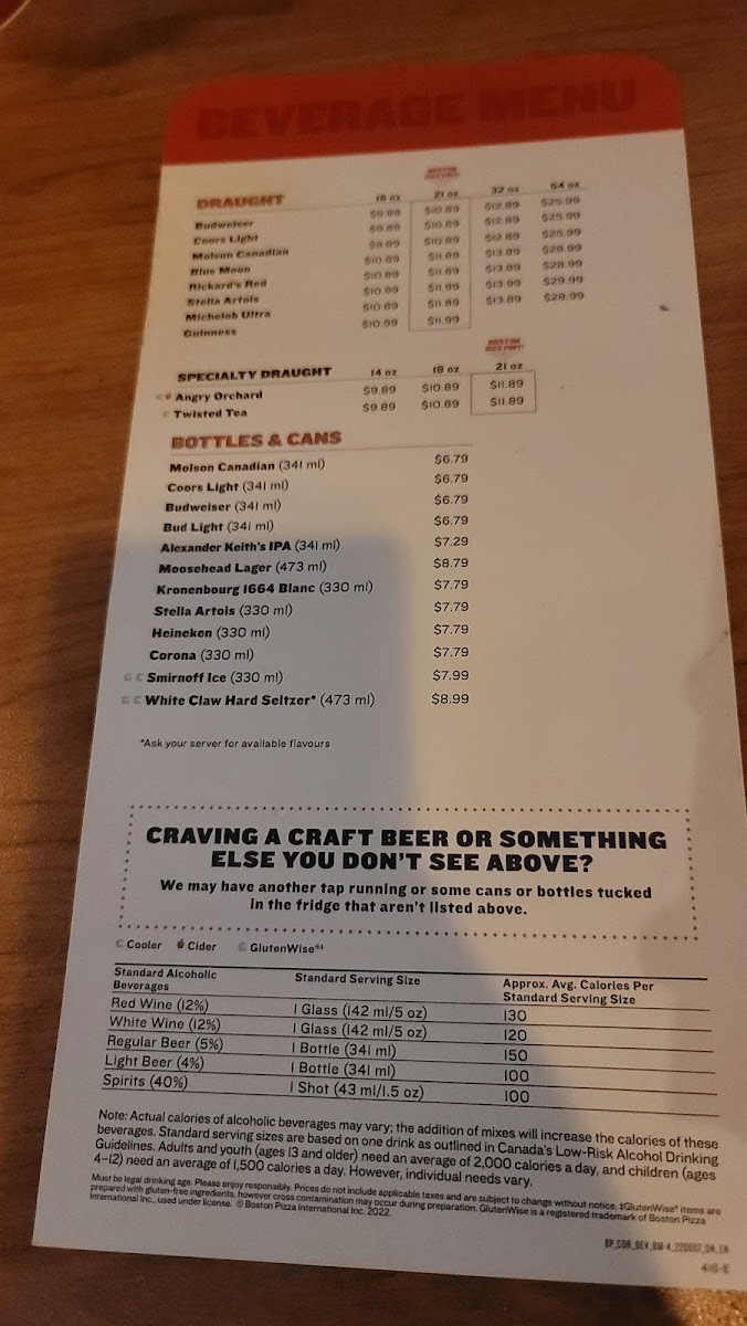 Boston Pizza Cobourg Menu (2025 Update)